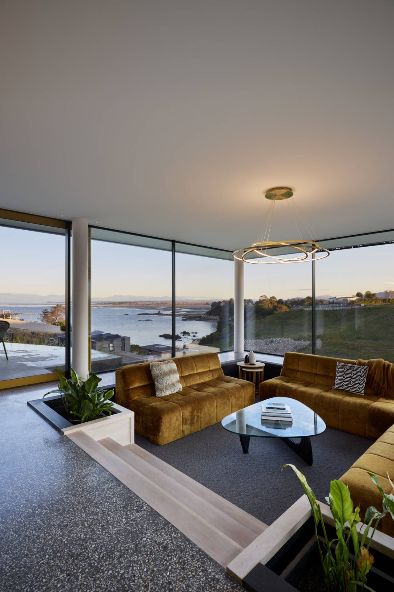 “The sunken lounge is quite a cool space,” says Paul. “Everyone gravitates toward that in the evening. When you’re sitting in that space, your elevation changes – you don’t see as much of the immediate housing below so the view out the floor-to-ceiling windows is unimpeded by housing. It’s pretty stunning.”