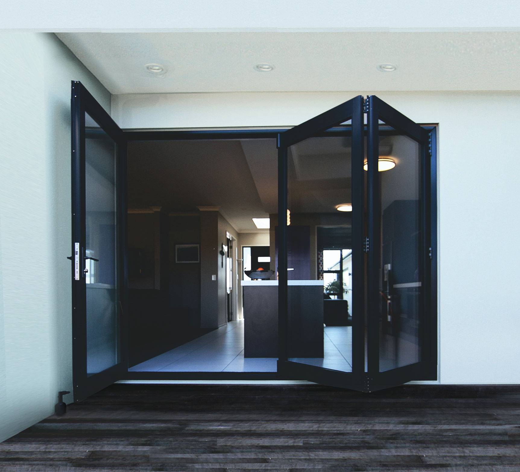Folding doors are perfect for entertaining, watching the outside world from the comfort of your home, and bringing in air and light. They can be large or small depending on design and available space. The door panels fold into a discreet stack leaving an unobstructed opening or view. There are a multitude of options available for how you want to stack the panels.