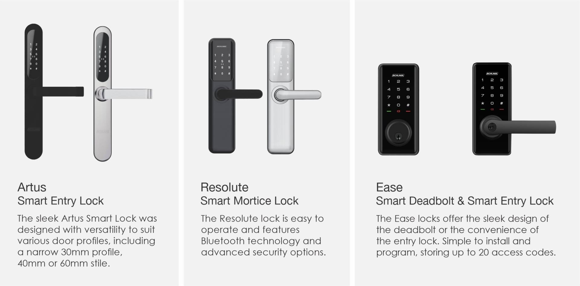 We have a range of stylish keyless entrance hardware for absolute convenience and security for safer living. For mor in the range see the brochure downloads.